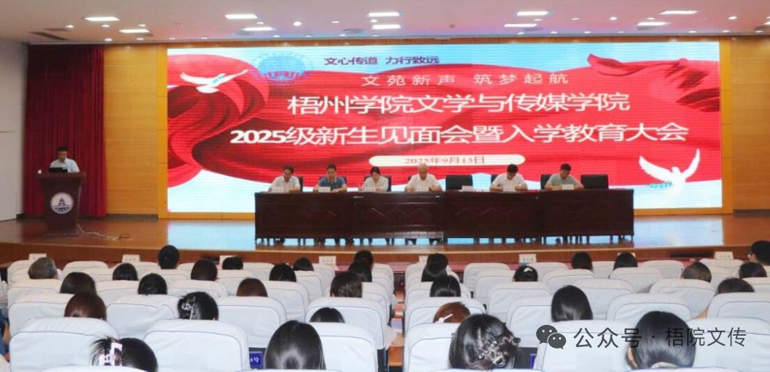 9月13日晚,梧州学院文学与传媒学院在明理楼一楼报告厅举办2025级新生见面会暨入学教育大会。出席本次大会的有学院党委书记梁宏云、学院副院长(主持工作)段祥贵、学院党委副书记龚红梅、学院副院长谢友中、文...[详细]