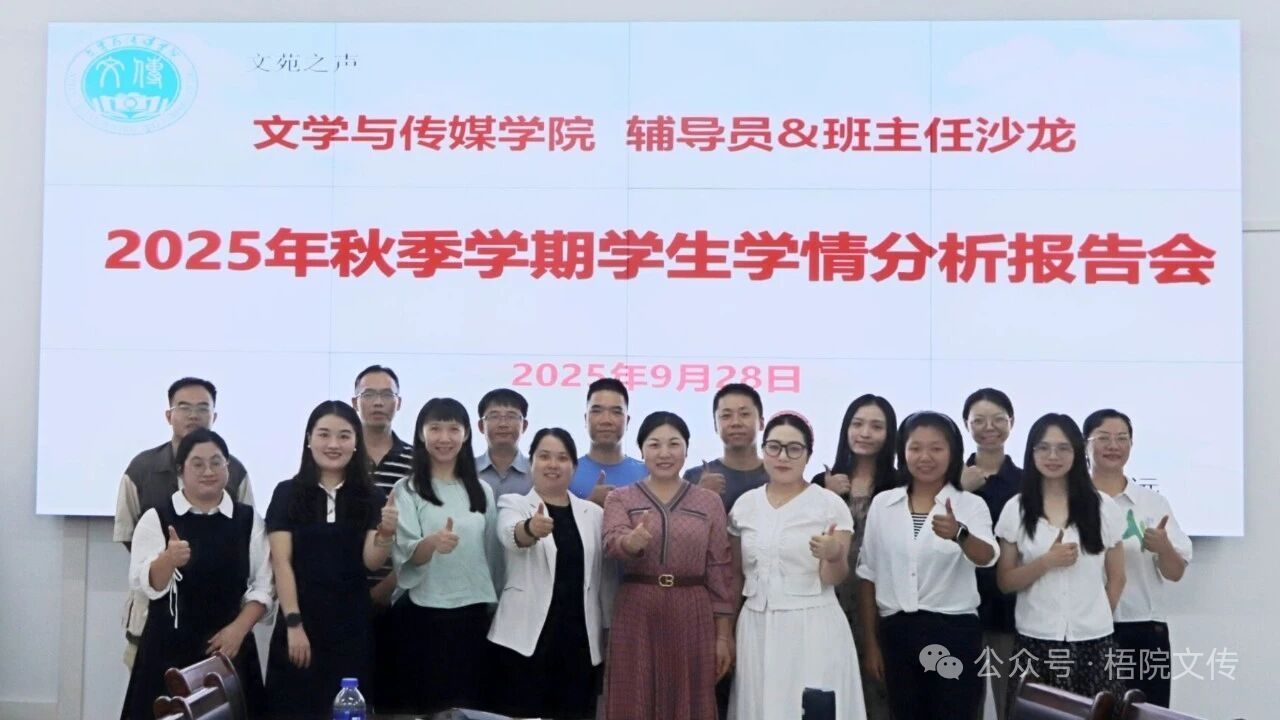 9月28日,文学与传媒学院在明理楼南楼一楼会议室举办辅导员&班主任沙龙 ——2025年秋季学期学生学情分析报告会。学院党委副书记龚红梅主持,全体辅导员、班主任参加了本次活动。会上,各位辅导员从不同维度,重点...[详细]