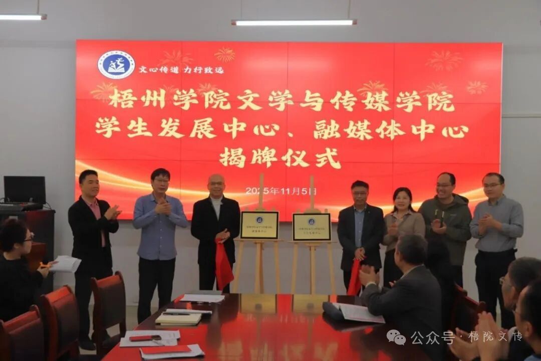 11月5日,梧州学院文学与传媒学院举行学生发展中心、融媒体中心揭牌仪式。学院党委书记梁宏云、副院长(主持工作)段祥贵、党委副书记龚红梅、副院长谢友中出席活动,各专业教研室主任、教师代表及学生代表参加活...[详细]