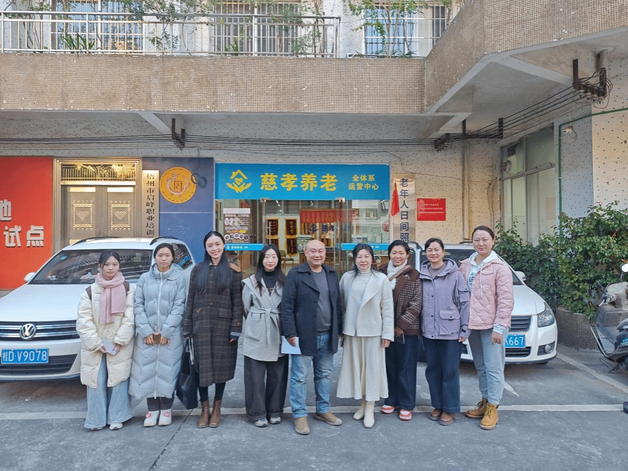 1月8日下午,梧州学院文学与传媒学院师生共赴广西梧州慈孝养老投资有限公司开展访企拓岗活动。学院党委副书记龚红梅带队,新闻学专业教师、辅导员及学生代表一行8人参加活动。