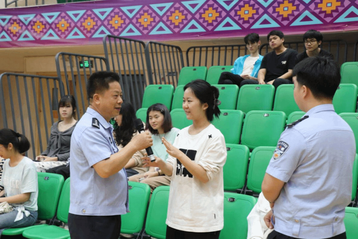 4月1日晚,梧州市公安局一级警长覃焕新警官受我院邀请,在体育馆三楼开展了以大学生防诈骗为主题的知识讲堂,参加此次讲堂的有文学与传媒学院、法学院、外国语学院、宝石与艺术设计学院、食品工程学院全体学生。