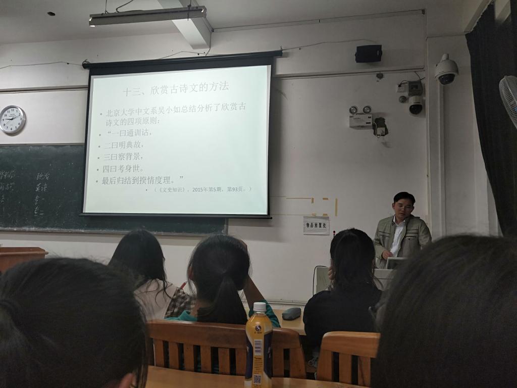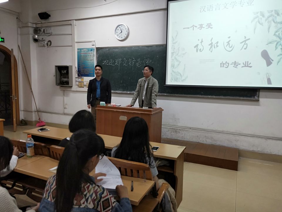 10月18日晚8点,2018级汉语言文学一、二班同学在明理理惑楼S404教室举行投稿指导暨学习方法分享会议。此次会议的特邀嘉宾是校党委宣传部宣传科科长、院报编辑部主任郑文锋老师,主讲人是班主任李光先老师。