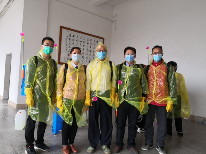 参加消毒的五名党员教师合影
