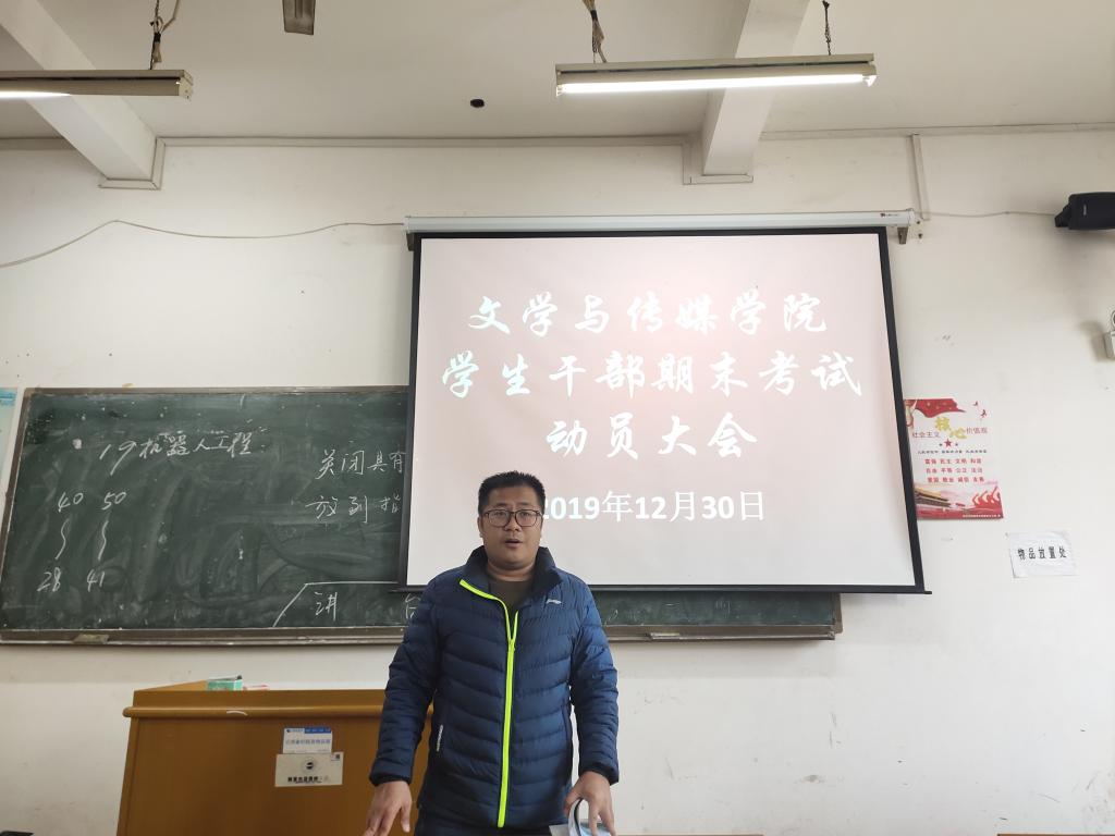 12月30日12:00,文学与传媒学院在明理楼N-305召开学生干部期末考试动员大会。党总支副书记何剑出席并主持本次会议,团委·学生会、青分、党建和易班的全体学生干部参加会议。