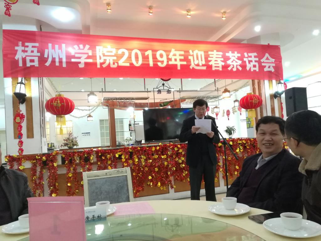 2019年1月19日8:30分,学校2019年迎春茶话会在第三食堂二楼举行。学校全体校领导、各二级学院领导、师生代表、留学生代表总计80人参加了座谈会。学校领导杨奔校长主持茶话会,唐平秋书记致辞。我院毛廷贵书记、黄美新教授、李光先老师、16级汉语言文学专业学生李月妹参加茶话会。李月妹还作为学生代表发言。