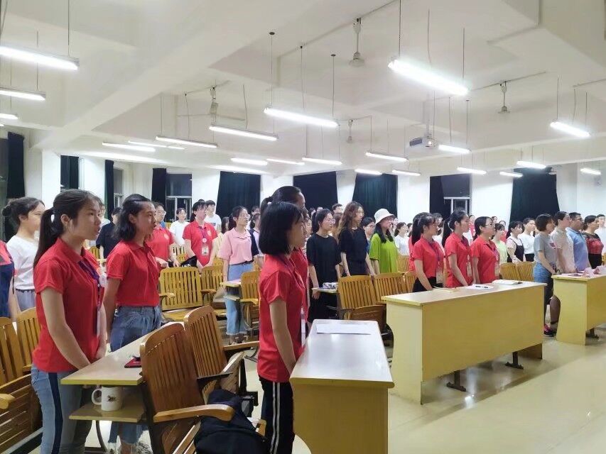 随着《国际歌》的响起,文学与传媒学院预备党员宣誓仪式暨第二期入党积极分子培训班结业典礼圆满落幕。