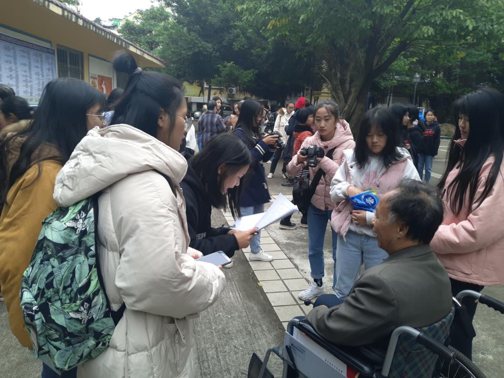 为了活动开展得更好,师生们利用午休时间,提前在社区的小花园拉好活动主题横幅,并借来了小蜜蜂等设备。下午4点,大家到达活动场地,短短10分钟,布置好场地,4点15分活动正式开始,由于有社区工作人员的帮助,提前发布了活动通知,尽管天气寒冷,参加活动的社区居民还是很跳跃,在听完宣讲后,一些老人拉着同学们的说还有更知心的话要说,说到动容处,甚至流下了热泪。5点15分,小区的小学生放学回家,活动的场地转移到社区的小教室,早有准备的同学们,在讲台上用活泼新鲜的形式向小学生宣传梧州的城市精神,现场气氛热烈。活动得到了梧州电视台的关注并报道,相关报道在2018年12月8日《民生老友记》播出。