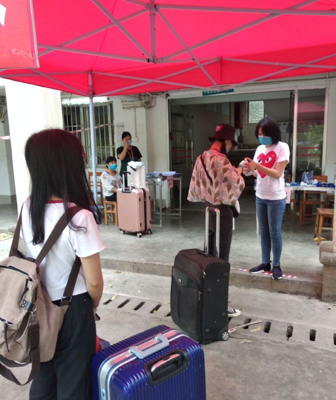 根据梧州学院开学疫情防控工作方案,为了迎接第二批返校复学的同学,切实保障师生身体健康和校园安全稳定, 5月7日下午,8日上下午文学与传媒学院共派出11名老师,参与学校迎接第二批返校复学学生的准备工作。其中梁宏云、朱俊海、林飞云、李长虹、周云中、秦延良等6名老师参加明理楼教室消毒防疫志愿服务工作。何湘君,严绘、李光先、李林青、王婷等5名教师参加校内相关学生宿舍楼值班志愿服务工作。疫情无情,师生有情!老师们表示,只要学生有需要,我们都在!