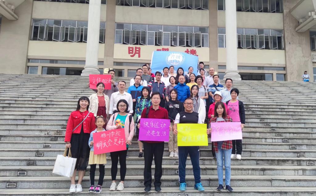 教职工们精神抖擞,在健步走过程中感受着校园秋色,大家边走边交流,既体会运动的快乐,又增进了情感。