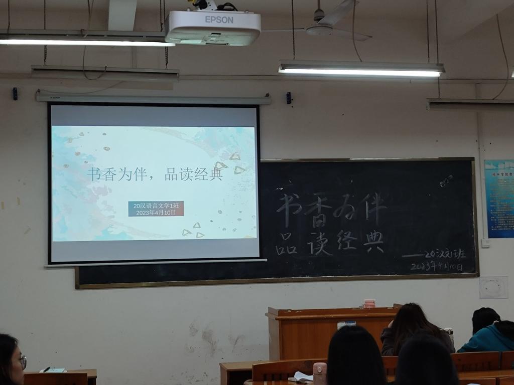 在世界读书日前夕,为引导学生养成“爱读书、爱分享、会读书、会分享”的好习惯,提高同学们的阅读能力,深入推进落实文学与传媒学院学风建设方案实施要求,2020级汉语言文学1班于4月10日下午在明理楼M401教室举办了“书香为伴,品读经典”读书分享会,学院党委副书记龚红梅(兼任2020级汉语言文学1班班主任)、2020级辅导员何得豪及2020级汉语言文学1班全体学生参加了此次分享会。