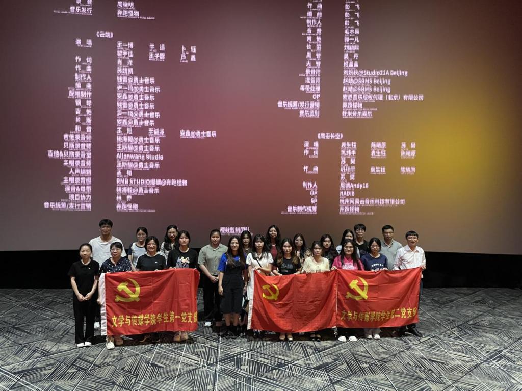 2023年6月24日,文学与传媒学院教师党支部组织师生党员、预备党员、发展对象、入党积极分子开展“学习先进典型,发扬红色精神”主题党日观影活动。师生们观看爱国主义电影《长空之王》,学习中国当代青年军人们敢于牺牲、奉献自我的精神,领悟《长空之王》蕴含的“家国情怀”、“责任担当”、“历史使命”,做到心中有信仰,脚下有力量。