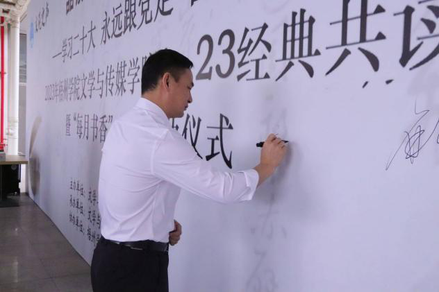 为鼓励引导师生养成良好阅读习惯,提高师生人文素养,传承中华文化,建设书香梧院,2023年4月14日上午,文苑之声“品读经典 传承文明——学习二十大 永远跟党走 奋进新征程”2023年梧州学院文学与传媒学院4·23经典共读活动暨“每月书香”活动启动仪式在明理楼南楼一楼顺利举行。学校党委常委、副校长麻新纯、范生汝 、学生工作部(处)长李德华、教务处处长方勇、校团委书记秦伟、文学与传媒学院党委书记梁宏云、图书馆馆长姚江波、教务处副处长江成英、马克思主义学院党委副书记罗吉娟、文学与传媒学院党委副书记龚红梅、梧州学院语言文字工作委员会老师、文学与传媒学院部分教师出席了本次活动,文学与传媒学院学生代表参加了本次活动。本次活动由文学与传媒学院院长王建军主持。