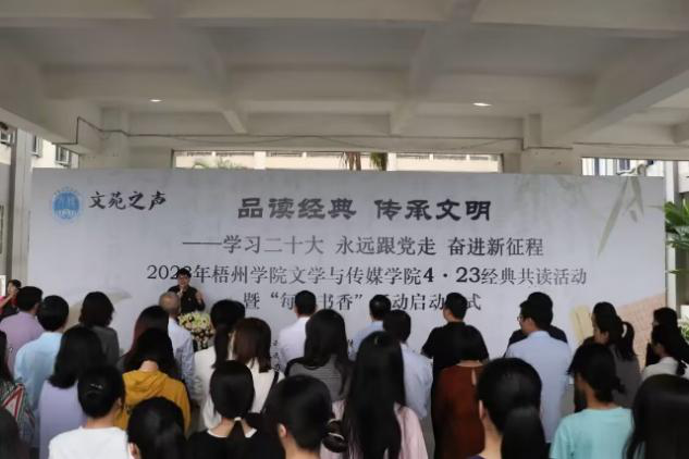 脚步无法丈量的地方,书籍可以。本次启动仪式为文苑之声“品读经典 传承文明——学习二十大 永远跟党走 奋进新征程”2023年梧州学院文学与传媒学院4·23经典共读活动暨“每月书香”活动的举办拉开了序幕。阅读可以修身亦可以养性,广大学子应该提高阅读兴趣,立志读遍天下书,向着新时代、新征程奋进。