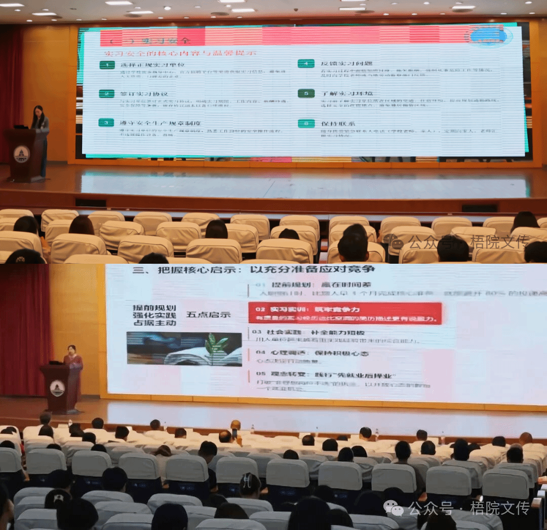 会议第二阶段由学院辅导员代表李锶雨主讲,围绕“近期工作清单+就业安全防护”展开实操性指导。工作安排上,她以时间轴梳理了10-12月重点任务,包括毕业生图像采集、就业信息登记、校园双选会筹备等;就业安全教育环节,她从“实习、防诈、交通、人身、财产”五大维度,结合案例提醒毕业生提高防范意识、妥善保管个人信息,遇可疑情况及时联系学校或报警,筑牢求职“安全防线”。