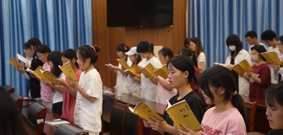 随后开展新生赠书环节,全体师生共同诵读《大学》经典,标志着新学年哲学专业经典诵读活动的开始。活动尾声,全体师生合影留念。