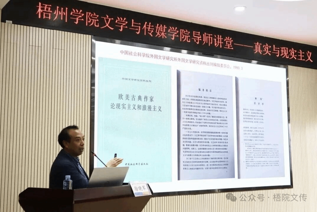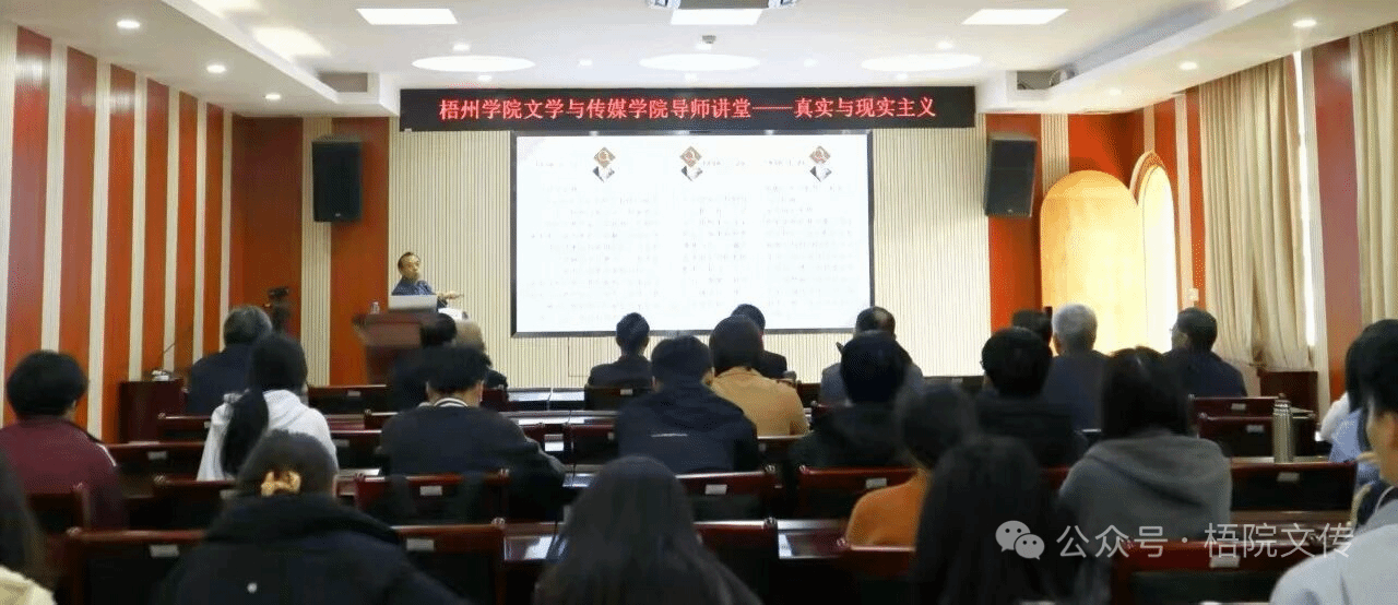 12月6日上午,梧州学院文学与传媒学院“导师讲堂”在明理楼七楼会议室如期开讲。西北师范大学文学院教授、博士生导师,北京师范大学文艺学研究中心兼职研究员徐晓军带来题为《真实与现实主义》的学术讲座。活动由文学与传媒学院党委书记梁宏云主持,学院师生齐聚现场,共探文学世界里“真实”的多元样貌。