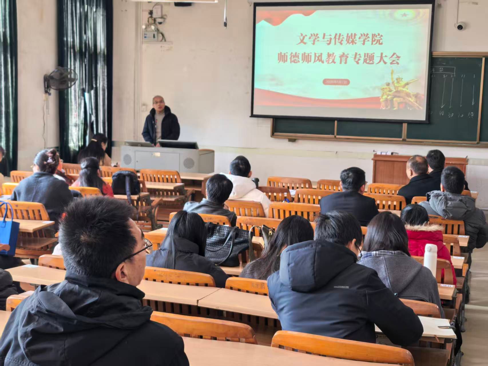 为深入贯彻落实新时代教师队伍建设的总体要求,强化教师职业道德规范,切实筑牢育人根基,2026年1月7日,文学与传媒学院召开师德师风教育专题大会。学院领导班子成员、全体教职工参加会议,会议由学院党委书记梁宏云主持。
