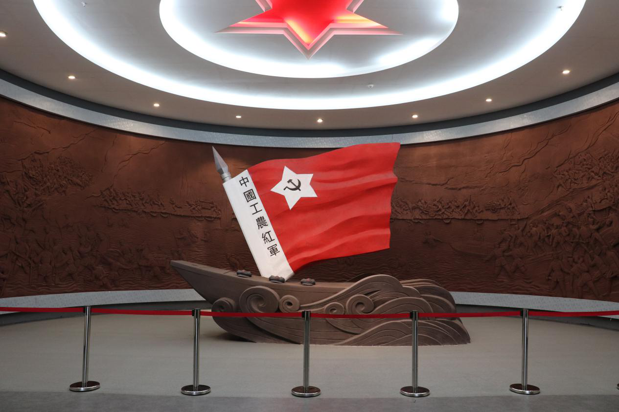 在讲解员的带领下,我们来到湘江战役纪念馆。纪念馆内主要分为苏区风云、兵临湘江、突破湘江、历史选择和精神永存五个主题区域。在认真聆听讲解后,我们更进一步地了解湘江战役的整个经过,那场最惨烈的战役仿佛就在我们眼前重演了一遍。