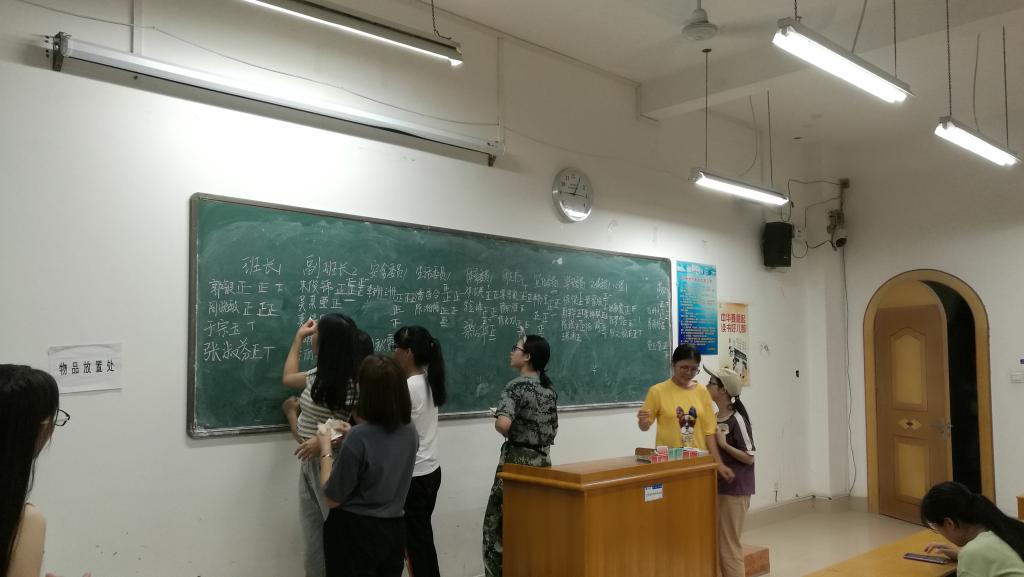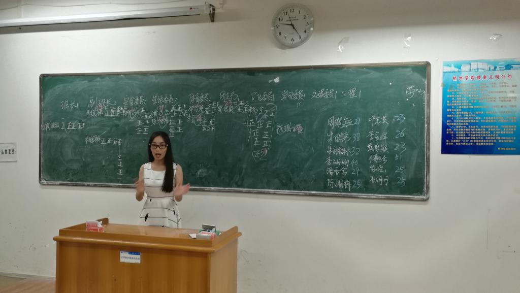 当晚同学们在M301教室集中,首先会议开始时由班助黄春梅学姐发言并介绍各个职位,其次同学们积极上台发言竞选自己心仪的职位,竞选结束后由全班同学对竞选的同学进行投票选出12名班干,周晓敏同学任班长。本着公平公正原则,竞选全过程由李光先老师和班助黄春梅学姐监督下完成。