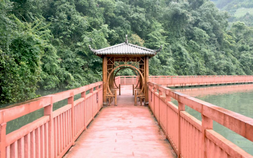 漆红栈道,环绕湖边,行走其中,阳光、湖风、蝉鸣伴脚步