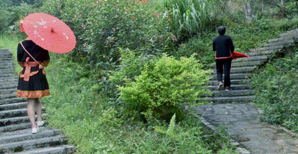 为了能够进一步体验长坪瑶寨乡的习俗文化,考察瑶寨乡居民的生活习俗,实践团在乡政府的帮助下借到瑶族服饰。研究之余实践团穿上服饰,行走在乡间仔细感受民俗风光。
