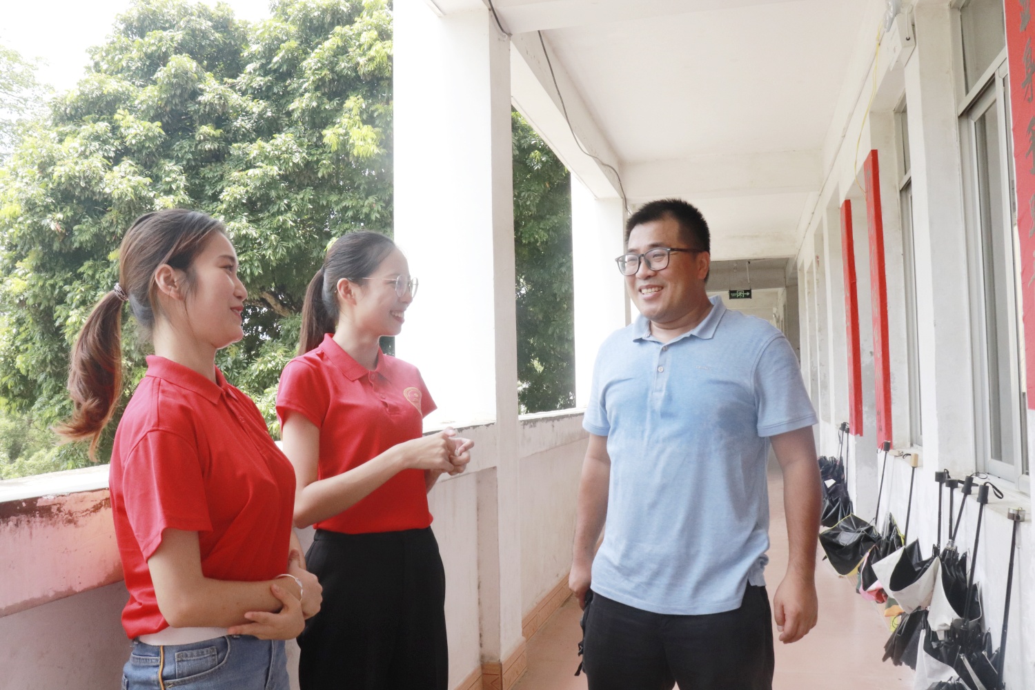 “辛苦你们啦!”中午11点,文传学院党总支副书记何剑与法学与公共管理学院团委书记刘涛来到岑溪中学住宿点视察并慰问开展支教活动的志愿者们。