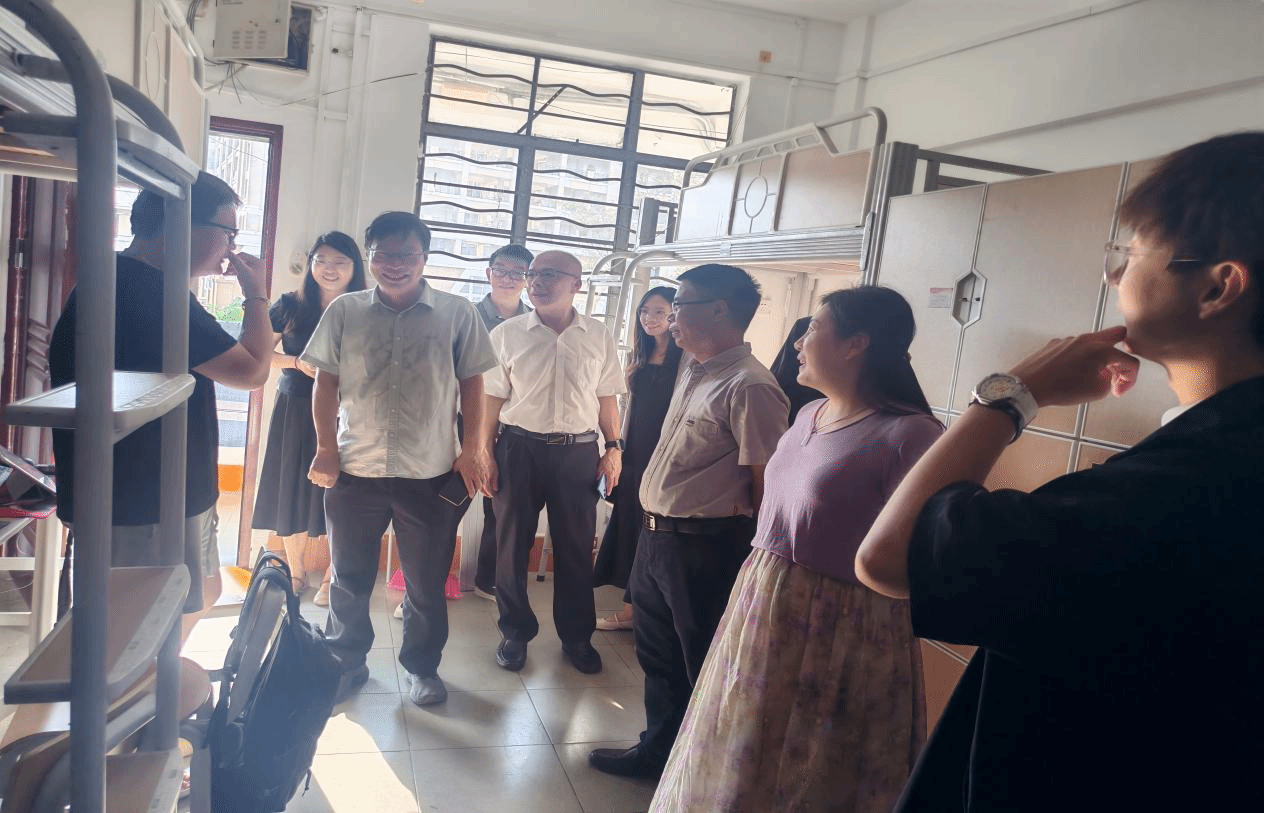 当天下午,学院党委书记梁宏云带领院领导班子、辅导员及班主任一行深入A11、A4等新生宿舍,开展走访慰问。“家乡在哪里?”“宿舍还习惯吗?”“之前学的是什么专业?”……领导老师们细致询问同学们的适应情况和个人需求,认真听取意见,并嘱托切实做好后勤保障,营造温馨舒适的生活环境。新生纷纷表示很荣幸也很开心加入梧院文传大家庭!