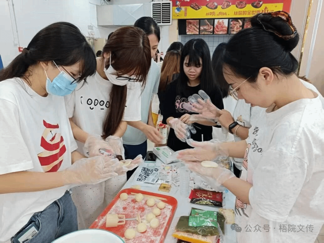 最受大家捧场的当属“月味手作坊”。戴上手套,揉面、压皮、填馅、按模,同学们有模有样地制作属于自己的月饼。现场有红豆沙、绿豆蓉、奶黄等多种馅料供大家选择,每一个小小的动作,都蕴含着对传统手艺的喜爱与传承。
