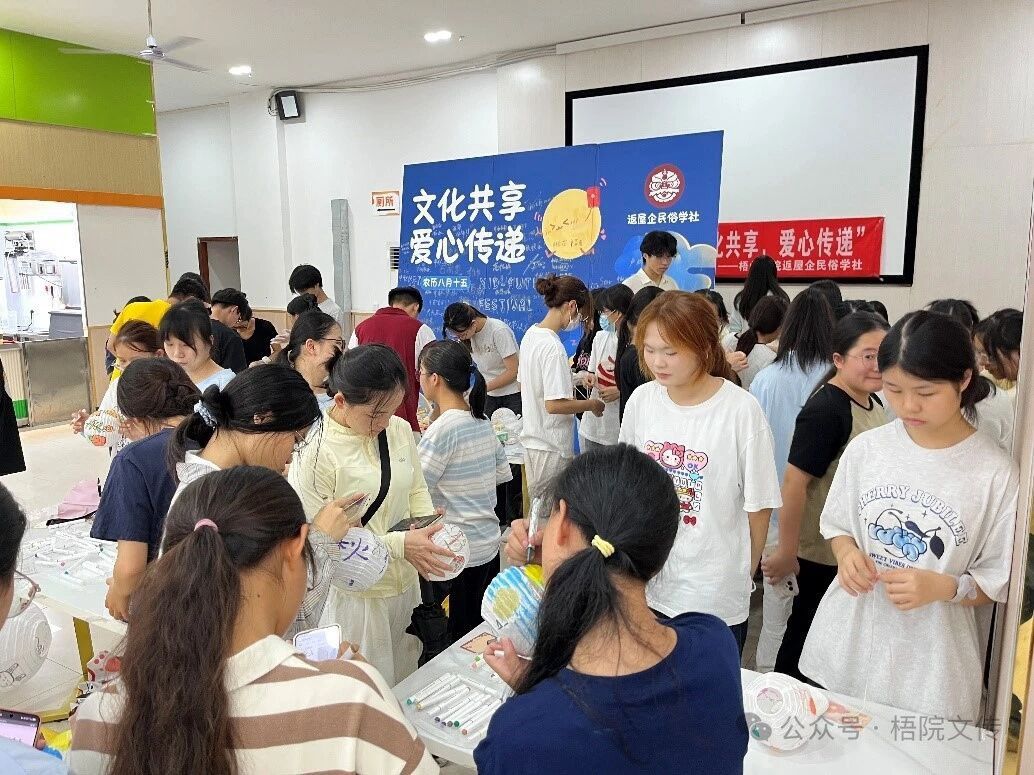 9月21日下午,由文学与传媒学院返屋企民俗学社精心策划的“天涯共此时——中秋民俗文化共享会”在学校第二食堂热闹开启。活动先后吸引了近200余名师生参与,共同体验了一场别开生面的传统文化之旅。文学与传媒学院党委副书记龚红梅到现场参加了活动。