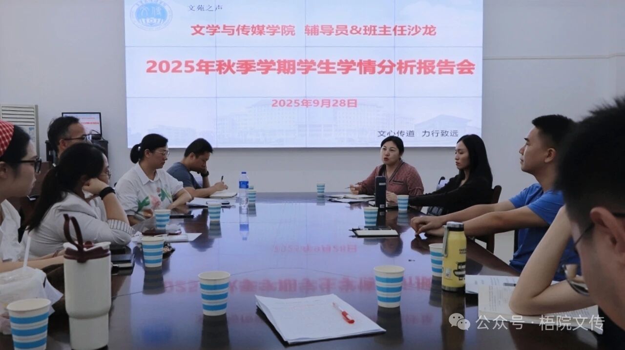 9月28日,文学与传媒学院在明理楼南楼一楼会议室举办辅导员&班主任沙龙 ——2025年秋季学期学生学情分析报告会。学院党委副书记龚红梅主持,全体辅导员、班主任参加了本次活动。