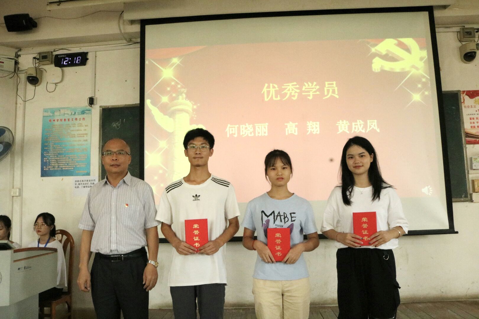 经过考核,本期培训班共有65位学员顺利结业。党总支书记梁宏云、学生第一党支部书记李红梅分别为优秀学员颁发荣誉证书和积极分子学员代表颁发结业证书。