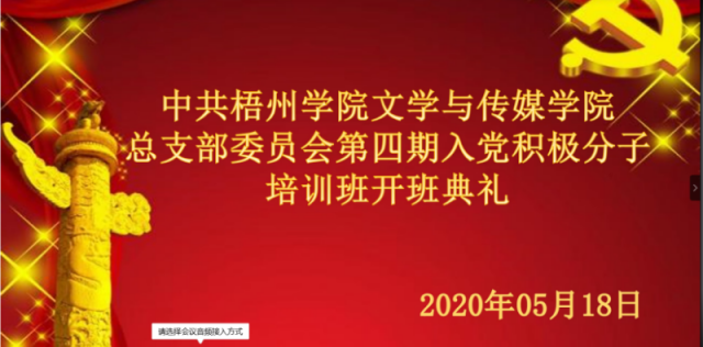 5月18日晚,文学与传媒学院第四期入党积极分子培训班开班仪式在腾讯会议召开。参加此次会议的有文学与传媒学院党总支书记梁宏云,党总支副书记何剑,学生第一党支部书记李红梅,培训班班主任周才芳,学生党建工作服务中心全体成员以及全体培训班学员。
