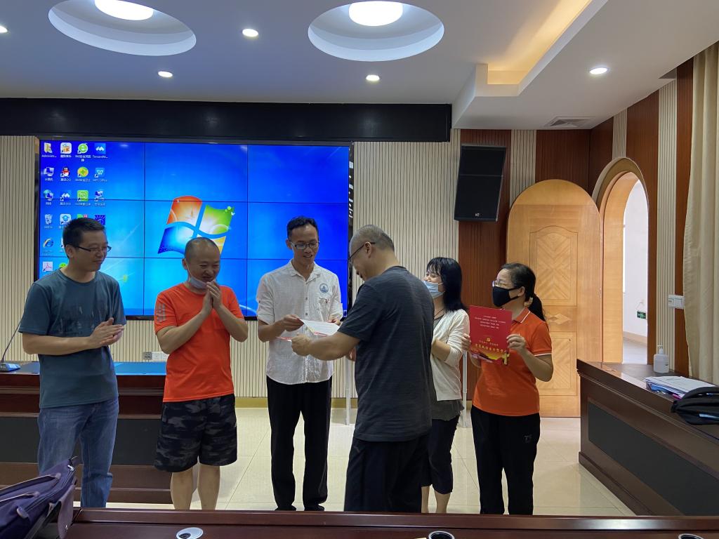 会上,首先由文学与传媒学院党总支书记梁宏云同志分别给何剑、黄美新、严绘、秦延良、李红梅、黄坤相等6位党员颁发了党员政治生日贺卡,拿到贺卡的党员都非常的激动。
