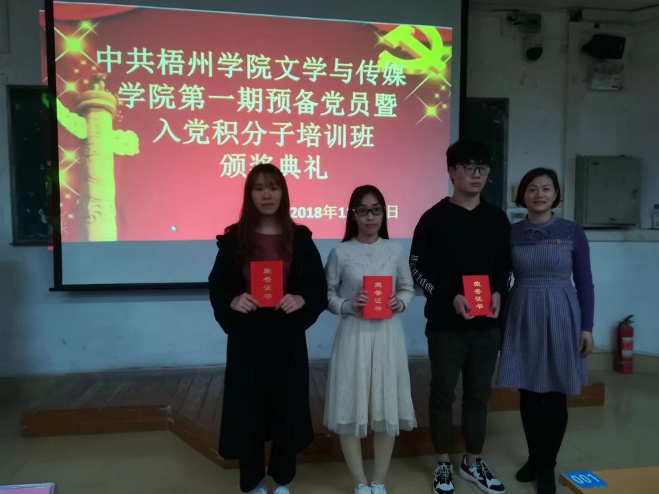 11月29日晚,中共梧州学院文学与传媒学院党总支部第一期预备党员与入党积极分子培训班结业典礼于明理楼南楼503举行。