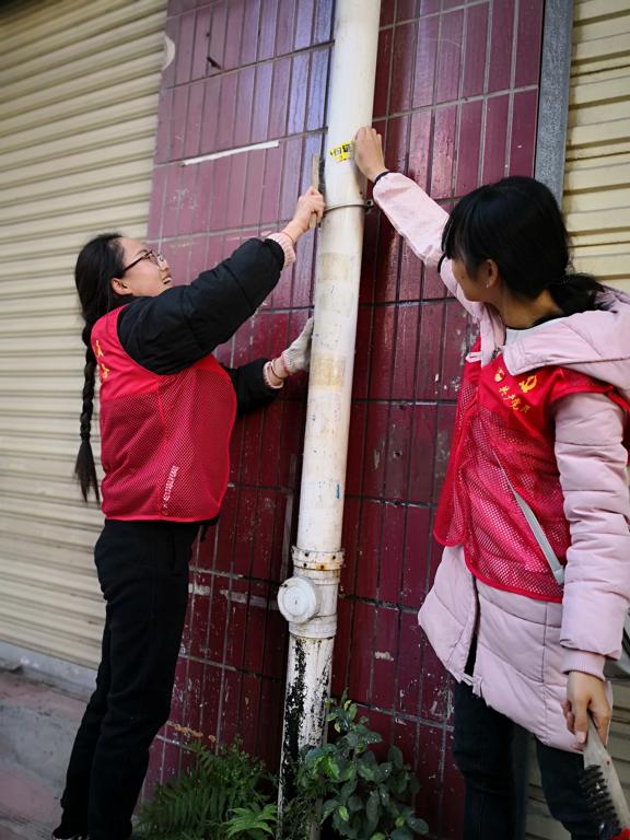 文传学院学生党员与社区同志在社区内进行了多方面环境整治行动。党员同志分工明确,男女搭配,相互合作,在社区同志的带领下清扫了各类杂物垃圾,平整了乱草荒地,清除了顽固小广告、“牛皮癣”等等,努力做到卫生不放过一个死角,垃圾不留到明早。